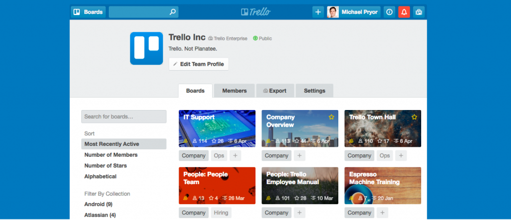 Users can easily navigate through the boards as Trello focuses more on an intuitive design that simplifies website navigation for the user.