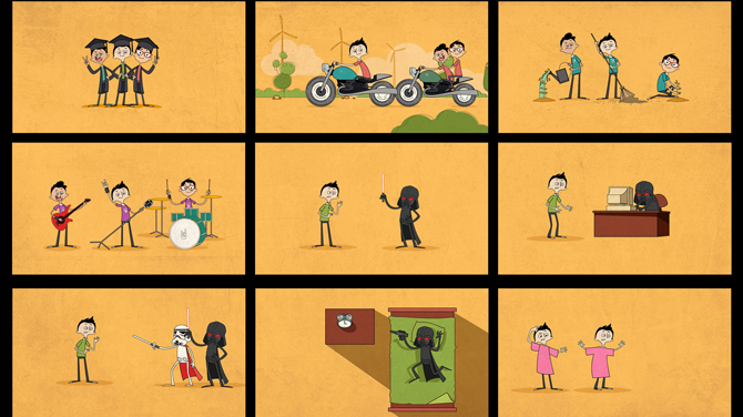 Once the storyboard is locked, the animation begins. This is the longest stage of the whole process. We typically use a combination of Photoshop, Illustrator, Flash, After Effects and Autodesk 3DS Max (StudioMax) to achieve the desired results.